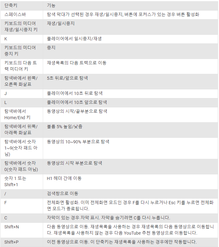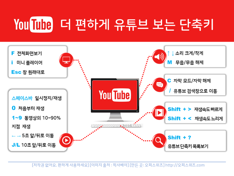 유튜브 단축키가 익숙하지않은 분들에게 좋은 정보였으면 좋겠습니다.
