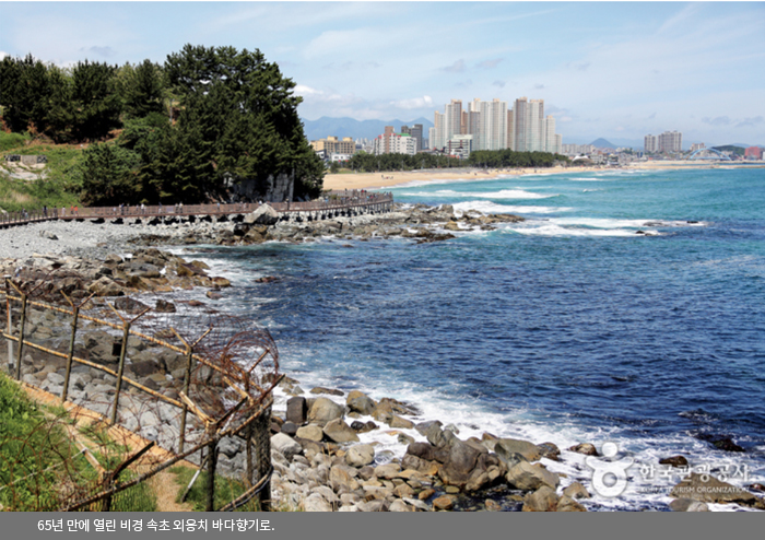 속초 가볼만한곳 베스트10 65년 동안 일반인들에게 공개되지 않았던 해안길로 나무테크가 설치되면서 산책을 즐길 수 있게 된 곳인데요. 그래서 소요시간은 30분으로 경사가 높지 않기 때문에 남녀노소 누구나 편하게 걸을 수 있는 산책길인데요. 따라서 속초 롯데리조트를 둘러쌓고 있는 바다향기로는 총길이 890m, 4개 코스로 되어있으며 시원한 바닷바람을 맞으며 아름당 누 해안절경을 감상할 수 있어요.