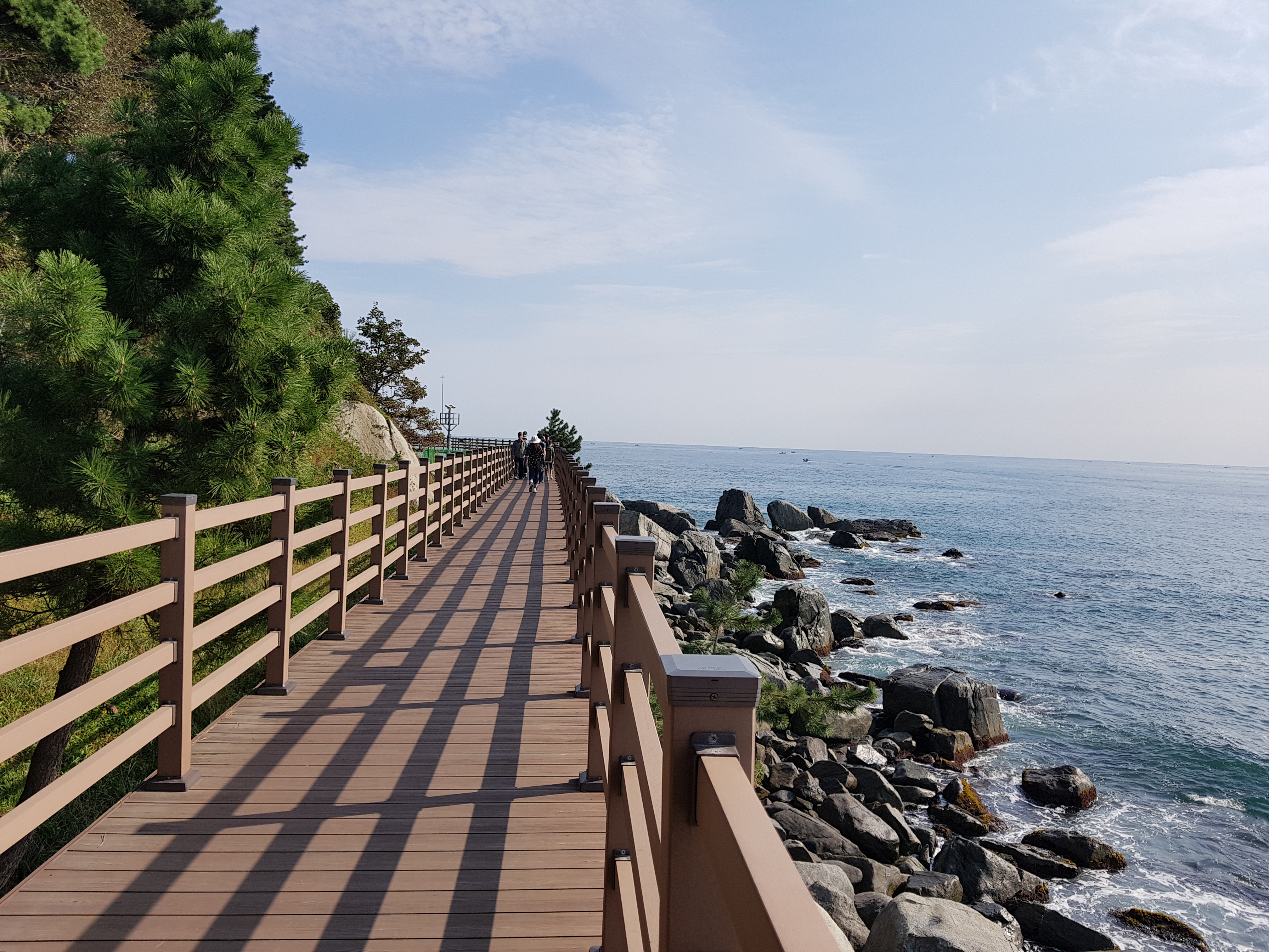 바로 옆의 바닷가 풍경을 보면서 산책할 수 있다는 점이 좋고, 산책로 구간 중 계단이 있는 구간도 있어요. 그곳 계단 밑으로 내려가면 바로 앞에서 파도바람 치는 모습을 감상할 수 있어요.