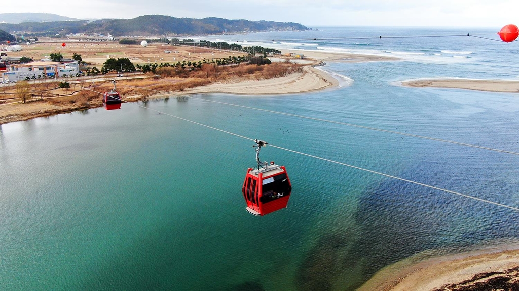 동해안 경관의 끝판왕이라 불리는 왕피천 케이블카도 경북 울진 가볼만한곳 베스트 10 빠질 수 없는 관광지인데요. 생태하천 왕피천과 청명한 동해바다의 망망대해를 관망할 수 있는 울진 왕피천 케이블카가는 국내 최대 규모의 생태경관 보존지역인 왕피천을 가로질러 하늘을 나는 기분인데요.