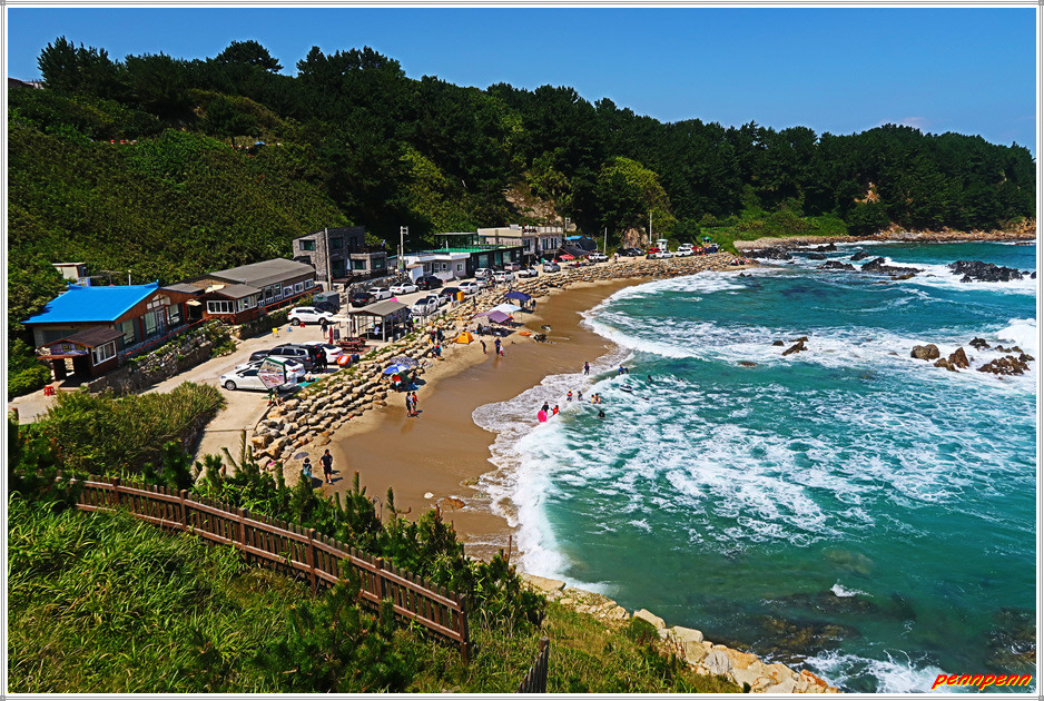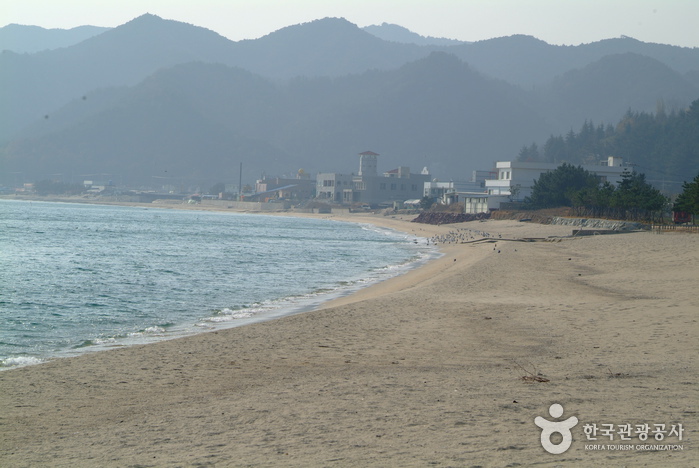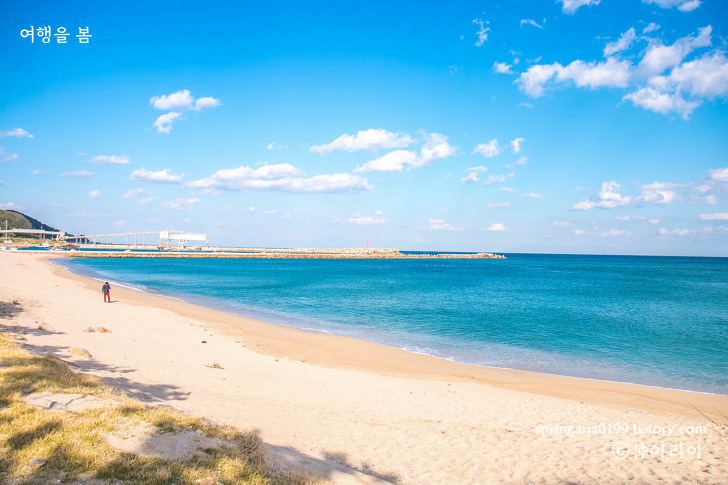 백사장 길이는 250m입니다. 1992년 해수욕장으로 정해지면서 후포면에서 가장 남쪽에 위치한 해수욕장인데요. 영덕군과 울진군의 경계지점에 위치해 북쪽으로 1.5㎞ 정도 가면 후포항 바로 아래쪽에 자리하고 깨끗하고 고운 모래톱이 특히나 인상적인 해수욕장인데요. 넓은 백사장과 동해의 쪽빛 물결이 합쳐져 빚어내는 환상적인 풍광을 통해 성수기인 여름철에는 해수욕을 수 많은 사람들에게는 좋습니다.