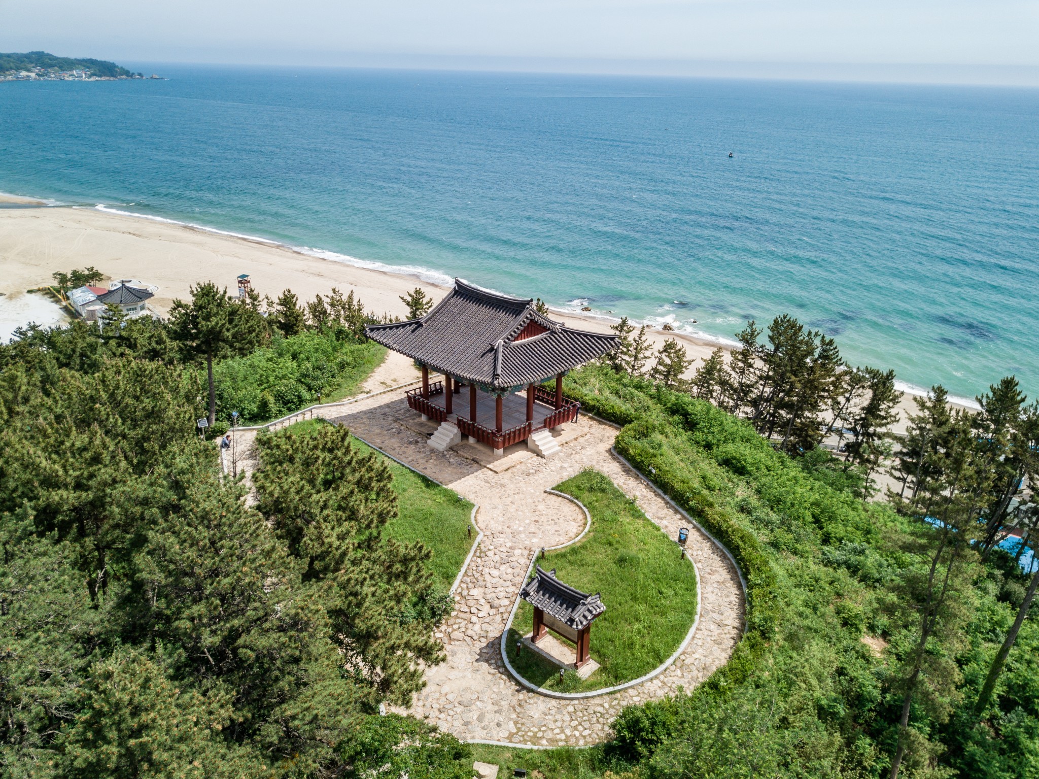망양정은 언덕 꼭대기에 위치한 아름다운 정자입니다. 그 정자는 주변 시골의 멋진 경치를 제공하고 휴식을 취하고 경치를 감상하기에 좋은 장소입니다.