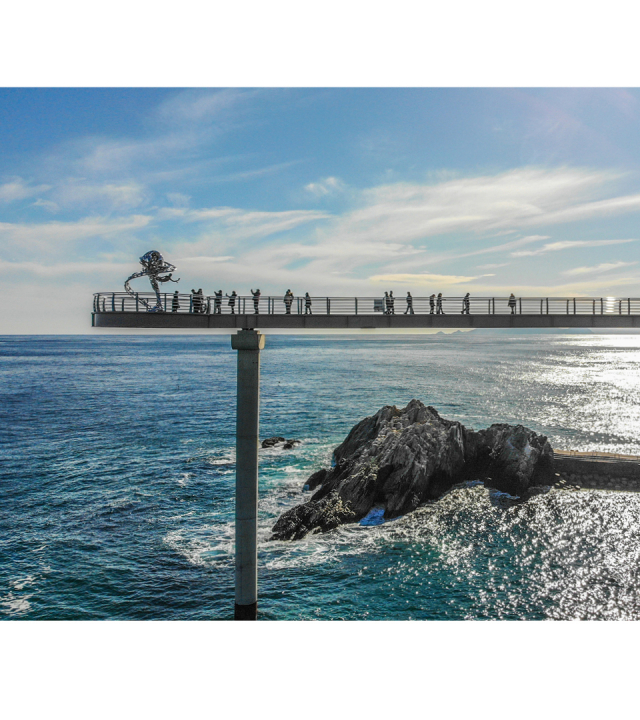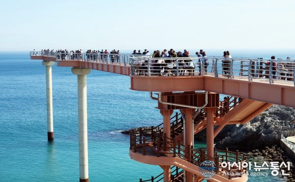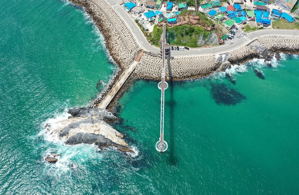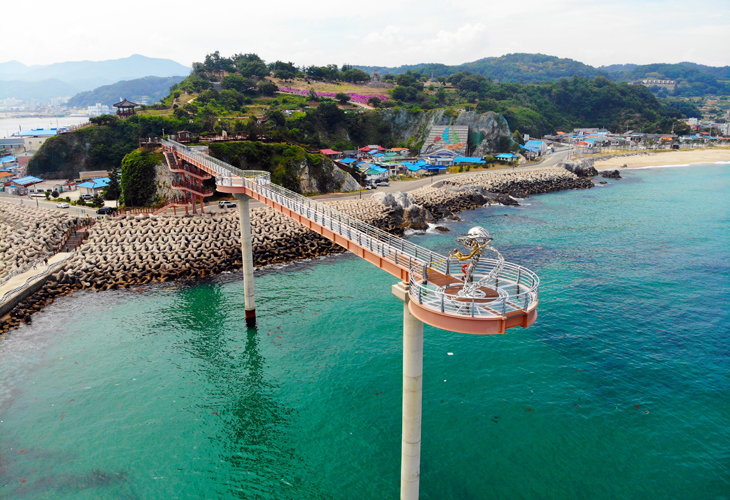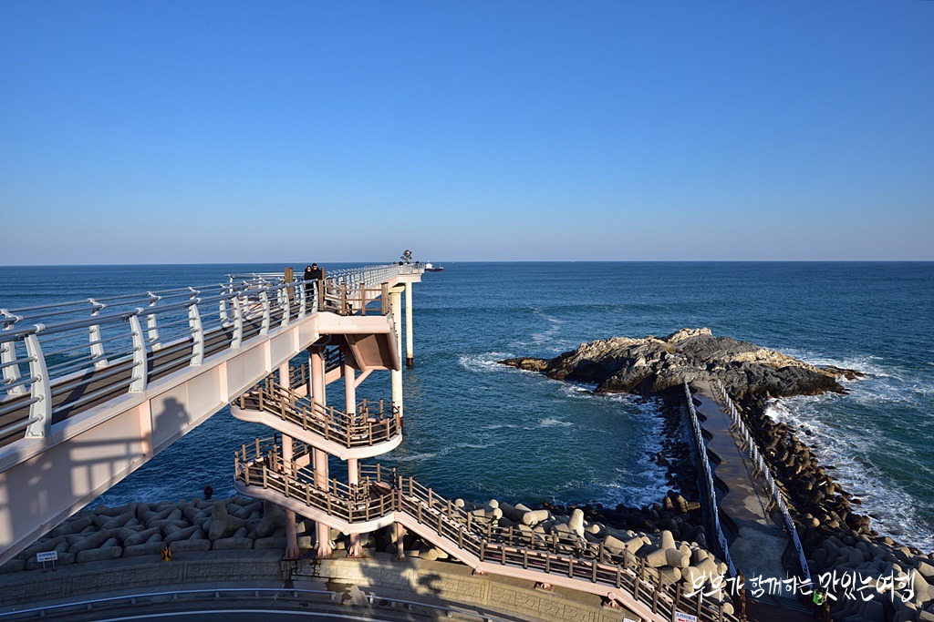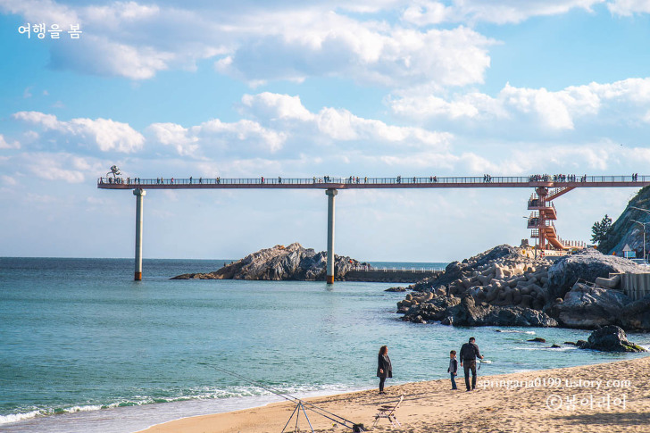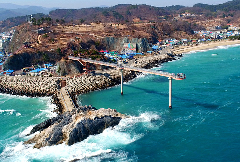 등기산 스카이워크는 높이 20m 길이 135m의 그중 해변으로 가는 57m는 강화유리로 바닥을 투명하게 만들어 스릴