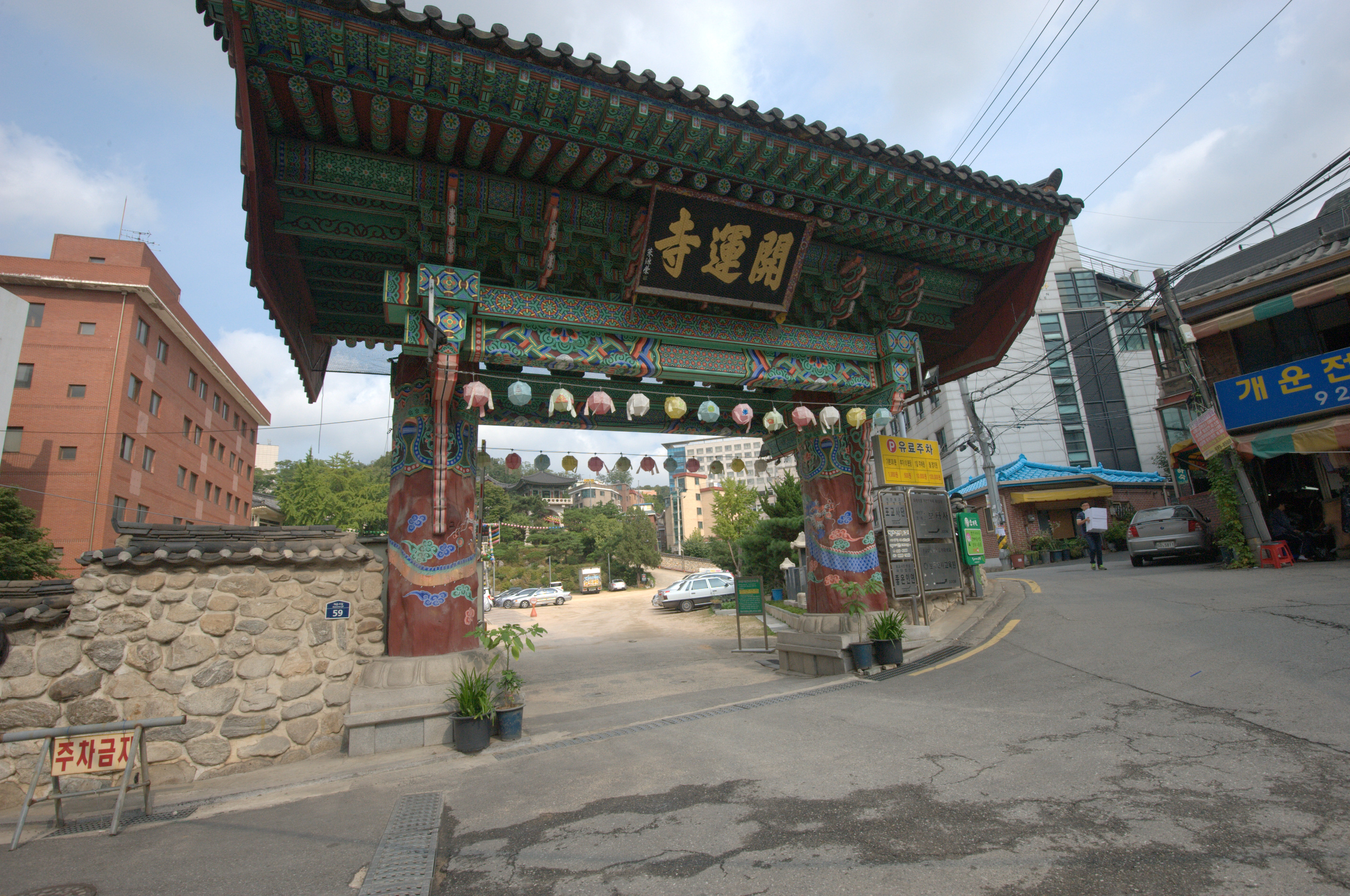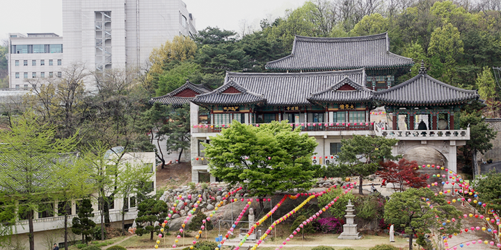 개운사는 신라 시대로 거슬러 올라가는 불교 사찰입니다. 그 절은 산 중턱에 위치해 있고 주변 시골의 멋진 경치를 제공해요.