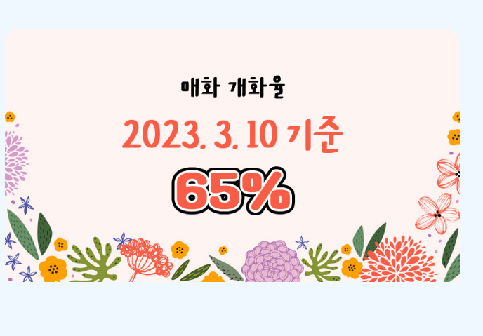 드디어 광양에서도 4년만의 공백을 깨고 2023년 광양 매화 축제를 개최한다고 해요. 꽃 축제의 가장 중요한 체크사항은 바로 일정인데요. 타이밍을 잘 맞추셔야 만발한 꽃을 만나실 수 있으므로 매화 축제 일정 늦지 않게 잘 체크하시고, 2023년 매화 개화 시기 반드시 알아놓고 가세요!